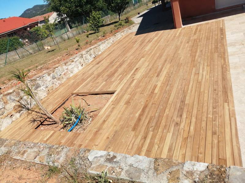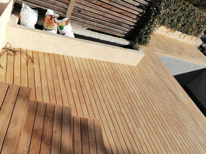 Lors de la conception de votre terrasse en teck à Marseille, nos artisans procèdent à une préparation minutieuse du sol, en veillant à ce qu’il soit dur, bien drainé et exempt de mauvaises herbes. Les lames de teck sont posées avec précision pour garantir un résultat impeccable, et des finitions protectrices sont appliquées pour optimiser la résistance et la beauté naturelle du bois. Grâce à l’ajustement en hauteur offert par les plots, nous assurons un écoulement efficace des eaux pluviales et une parfaite stabilité de la terrasse.