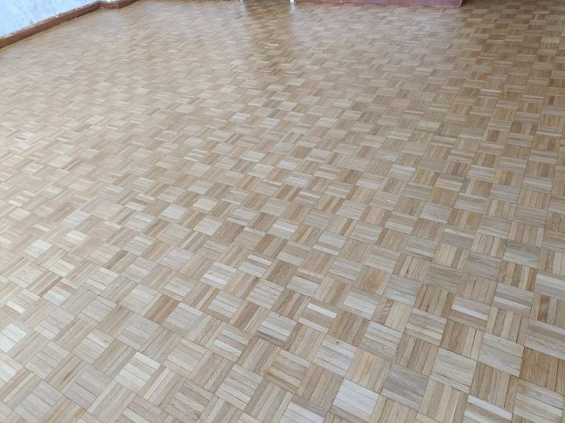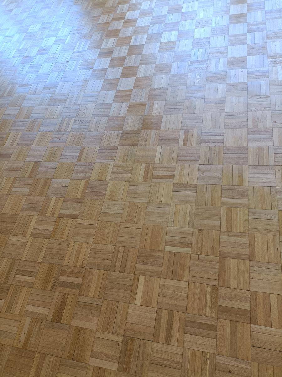 Dernièrement, nous avons réalisé une rénovation complète d’un parquet chêne mosaïque. Après un ponçage minutieux pour éliminer les traces d’usure et uniformiser la surface, nous avons appliqué une vitrification avec un vernis satiné. Ce traitement offre non seulement une protection durable contre les agressions du quotidien, mais aussi une finition brillante qui met en valeur la beauté naturelle du chêne.