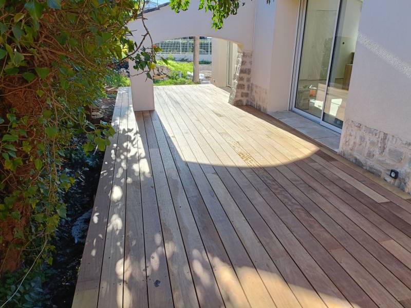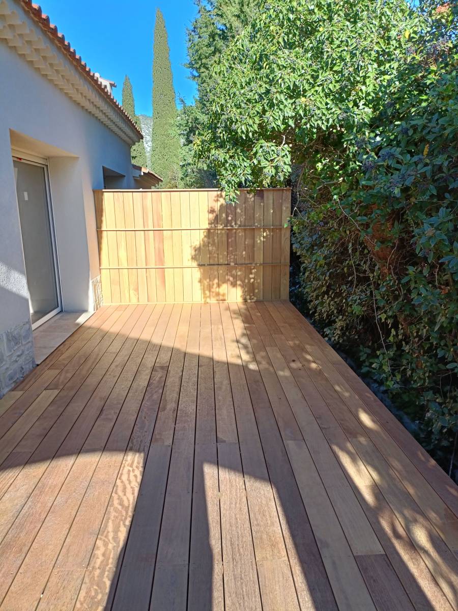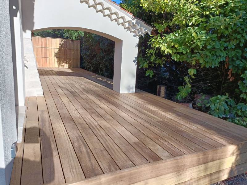 L'une de nos réalisations les plus récentes nous a conduits au cœur de Gémenos, où nous avons réalisé une superbe terrasse en bois d'Iroko, en utilisant une technique de pose sur longrine en béton. Cette approche garantit une stabilité optimale tout en mettant en valeur la beauté naturelle du bois d'Iroko. Notre engagement envers la qualité et la précision se reflète également dans la création de coffres et de brise-vues, ajoutant une touche d'élégance et de fonctionnalité à l'espace extérieur.